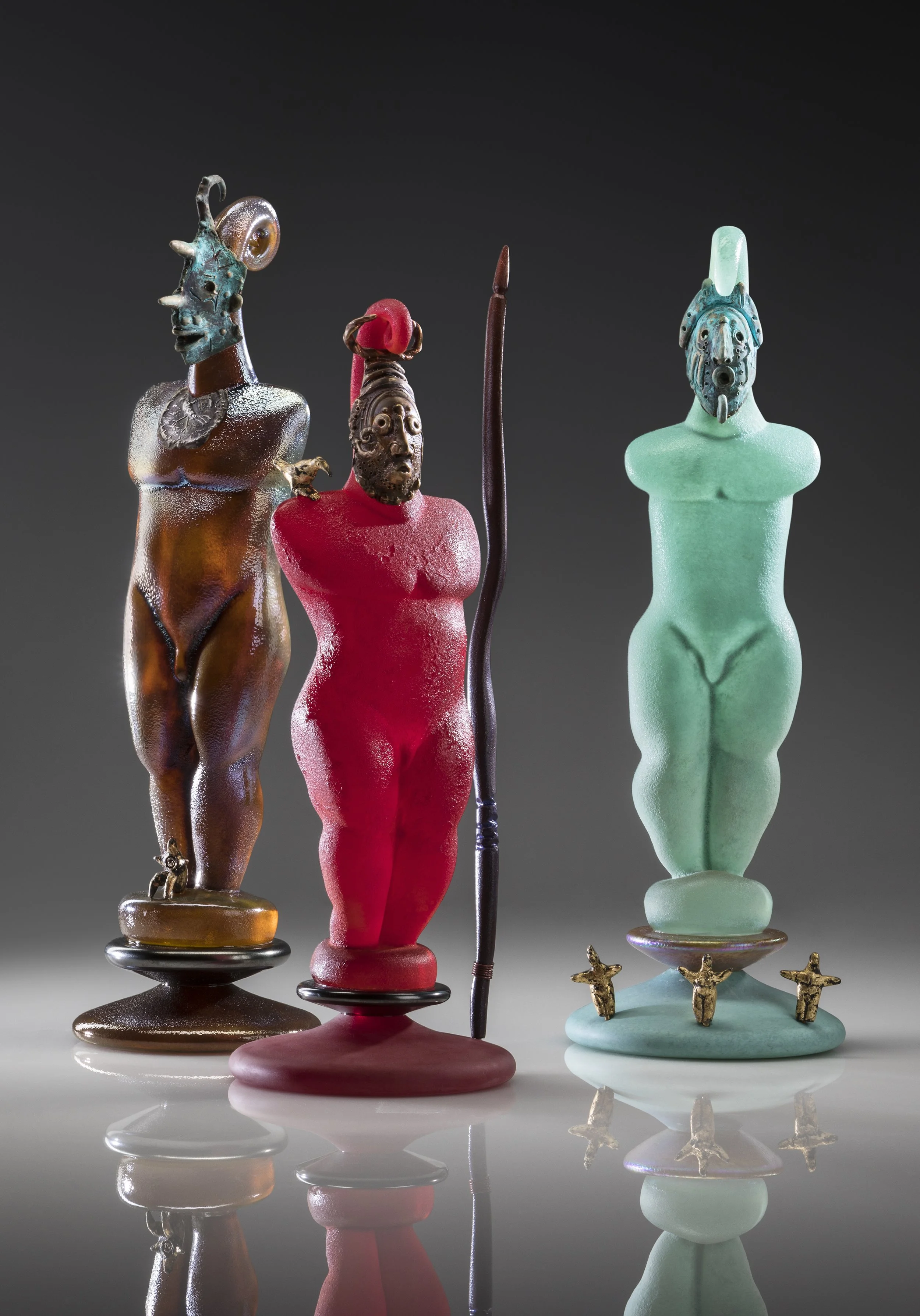 Through the timeless nature of glass and bronze materials, Holmes and Embroli create sculptures that blur the line between modern art and ancient artifact. The artists skillfully and creatively interpret iconic symbols of humanity, expressing the precarious relationship between us and nature. The intent of each piece is to express the spirit of old-world cultures and their relationships with the planet and humankind. The GUARDIANS visually reflect this deeply-rooted connection, with an intent to inspire the viewer to be cognizant of the immense responsibility we have as humans to protect each other, the vulnerable, and our beloved mother earth.